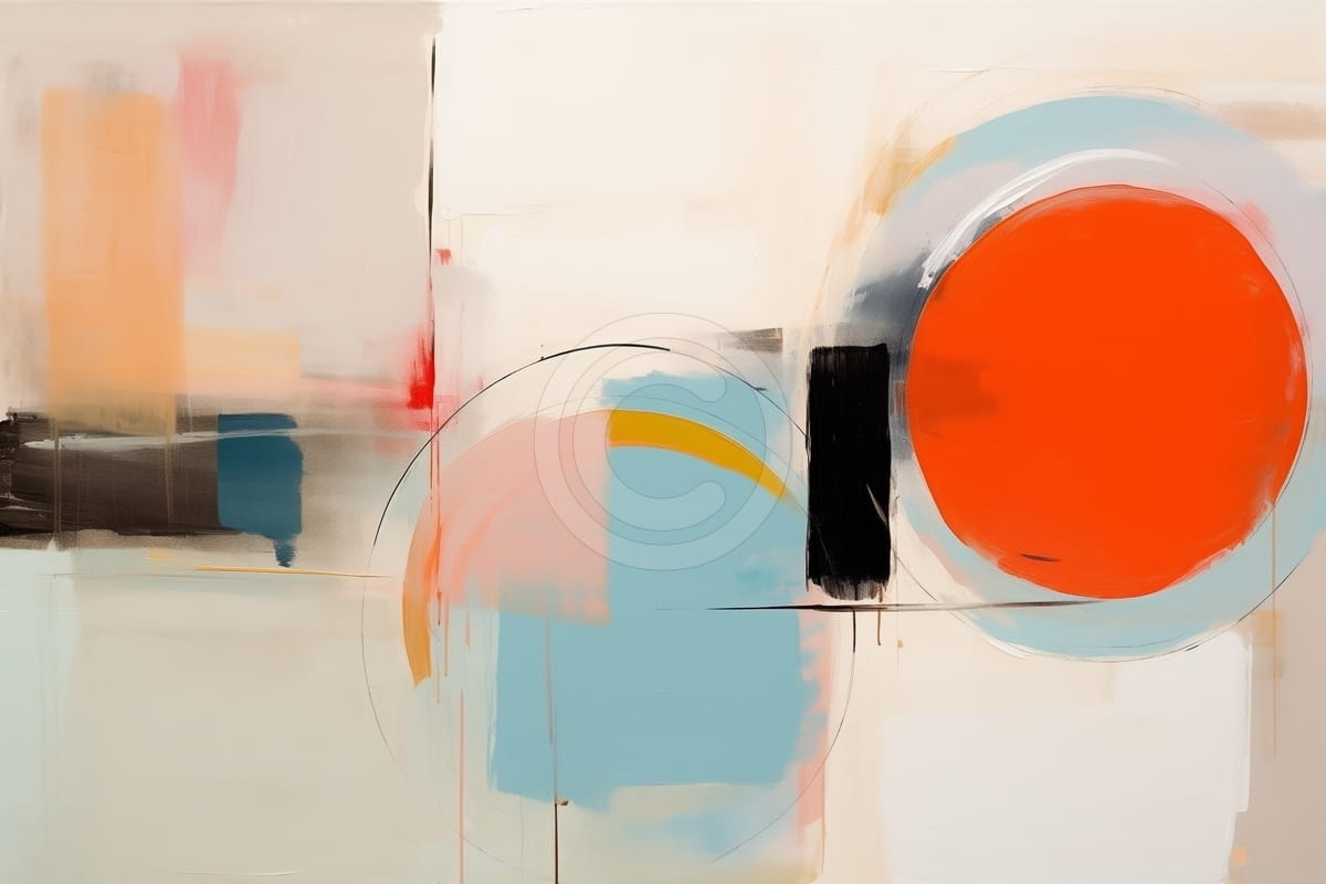 Acest tablou abstract se remarca prin prezenta unui cerc rosu intens, care devine punctul central al unei compozitii echilibrate si expresive. In jurul sau, nuantele pale de bleu, crem si portocaliu creeaza un contrast subtil, completat de accente de negru ce adauga profunzime si definire. Liniile fine si formele geometrice suprapuse aduc ordine si ritm, temperand energia culorii dominante. Compozitia reuseste sa imbine dinamismul cu eleganta, pastrand o claritate vizuala placuta. Dialogul dintre tonurile calde si reci confera tabloului un aer modern si rafinat. Acest tablou este ideal pentru living, birou sau un spatiu creativ, unde aduce personalitate si un impact vizual puternic.